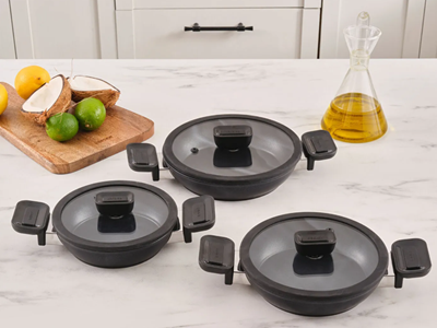 Çift sapıyla ergonomik tasarıma sahip Karaca Quick&Safe Düdüklü Tencere Seti, diğer düdüklü tencerelere kıyasla daha az yer kaplayıp, aynı zamanda dengeli ve kolay bir tutuş sağlar.